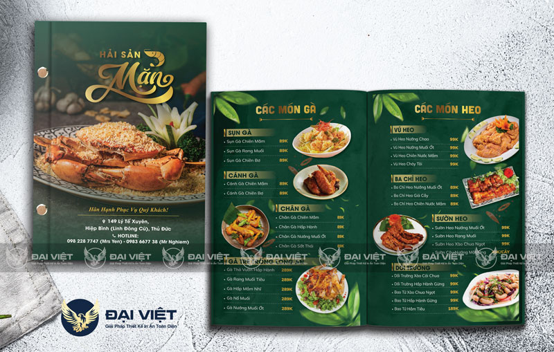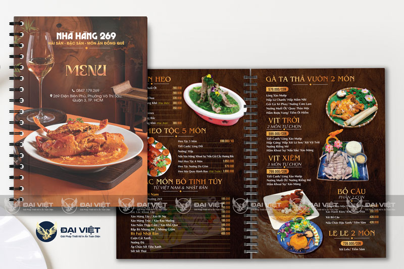 • Đa dạng mẫu mã: Có thể thiết kế dạng menu bìa còng, menu cửa sổ, menu photobook… tùy nhu cầu.