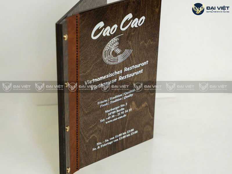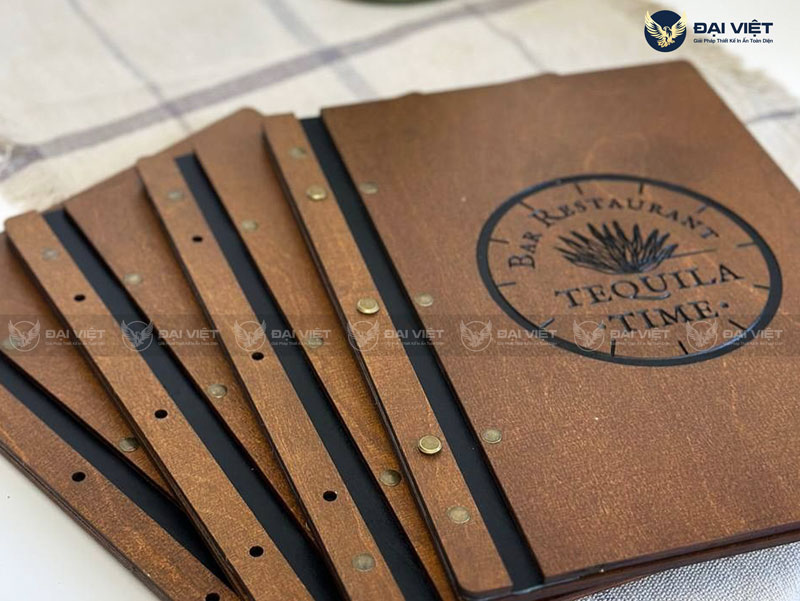 - Bìa gỗ, bìa vải linen: Dành cho nhà hàng cao cấp, phong cách độc đáo.
