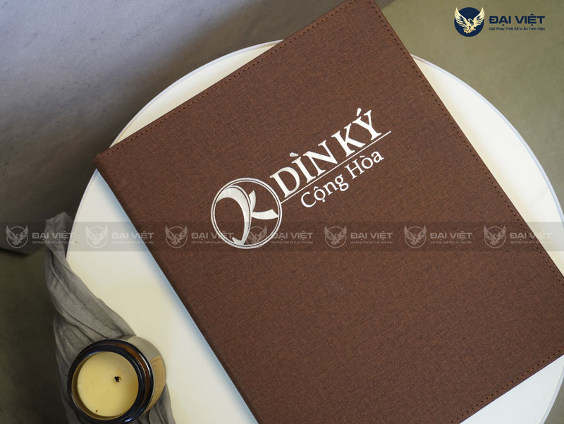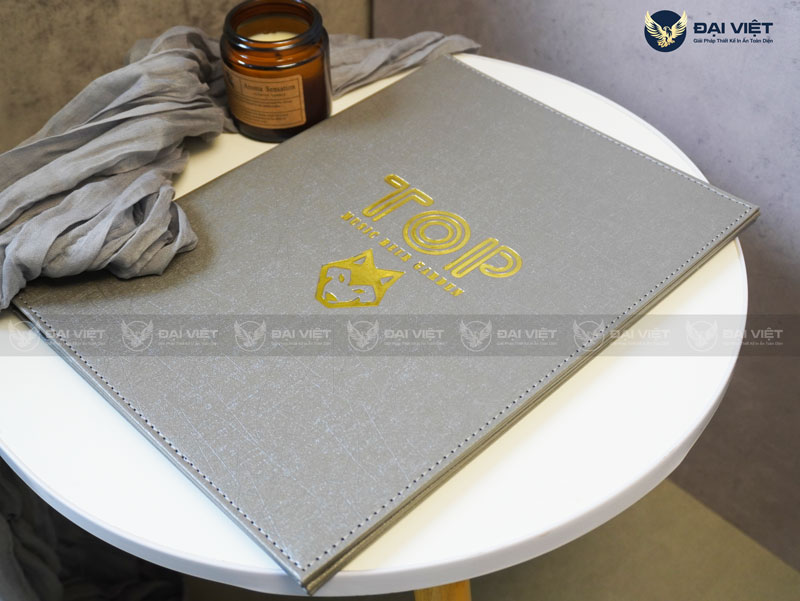Ép kim/dập chìm logo lên bìa da: Tạo điểm nhấn sang trọng cho dòng menu bìa da